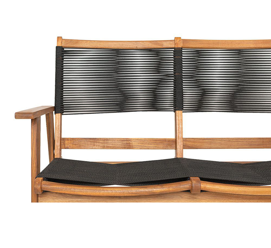 Διθέσιος καναπές για πισίνα σε μαύρο χρώμα, κατασκευασμένος από σχοινί και ξύλο ακακίας, είναι η ιδανική επιλογή για να προσθέσετε έναν συνδυασμό μοντέρνου στυλ και φυσικής ομορφιάς στον χώρο σας. Ο κομψός σχεδιασμός του δημιουργεί μια εντυπωσιακή και φιλόξενη αίσθηση. Το ξύλο ακακίας προσδίδει ζεστασιά και αντοχή, ενώ το μαύρο σχοινί προσφέρει μια μοναδική υφή και άνεση στο κάθισμα και την πλάτη. Αυτός ο καναπές είναι ιδανικός για χρήση τόσο σε εσωτερικούς όσο και σε εξωτερικούς χώρους, προσφέροντας ευελιξία και στυλ σε κάθε περιβάλλον. Ο συνδυασμός των φυσικών υλικών με τον μοντέρνο σχεδιασμό τον καθιστά ένα μοναδικό κομμάτι που θα αναβαθμίσει κάθε χώρο. Αναβαθμίστε τον χώρο σας με τον μικρό καναπέ και απολαύστε την τέλεια συνδυασμό άνεσης, ανθεκτικότητας και στυλ