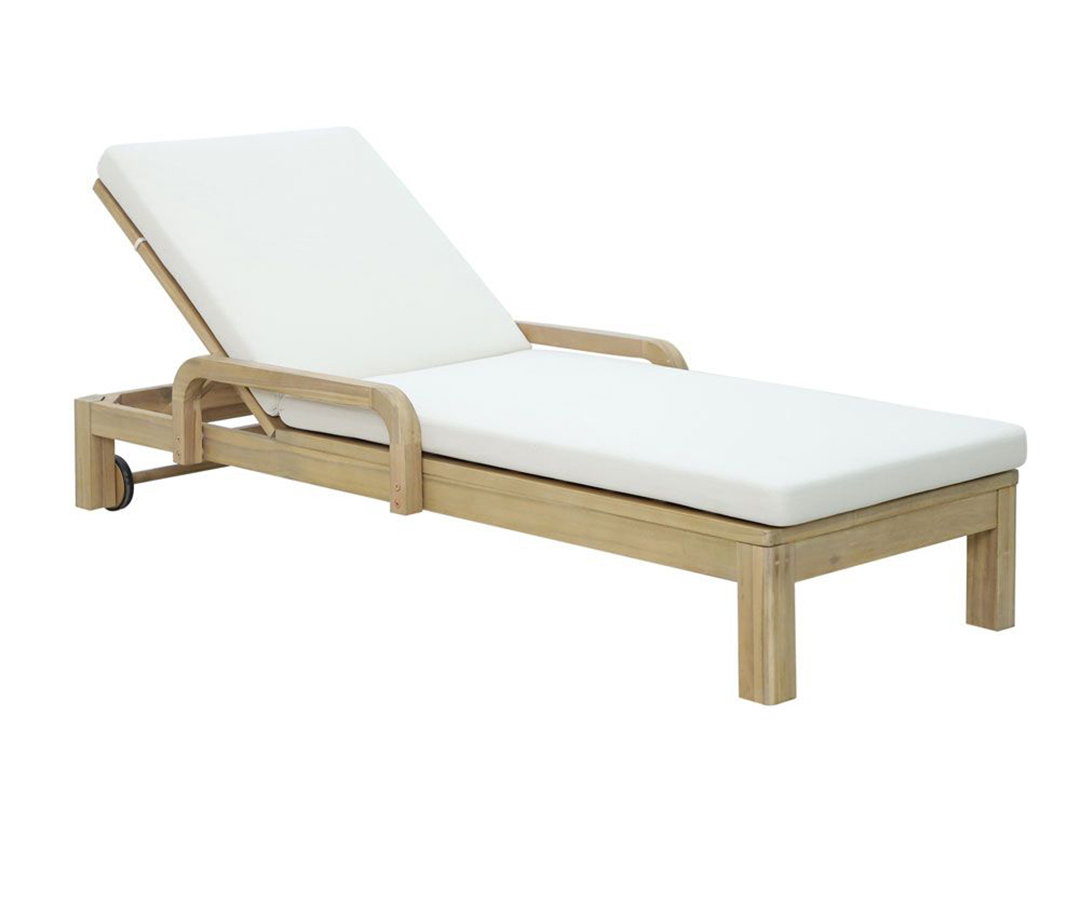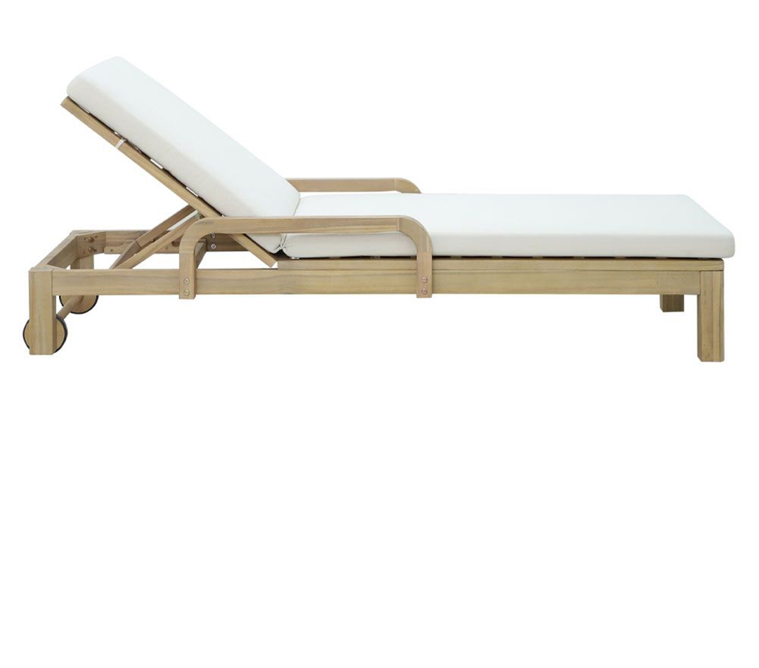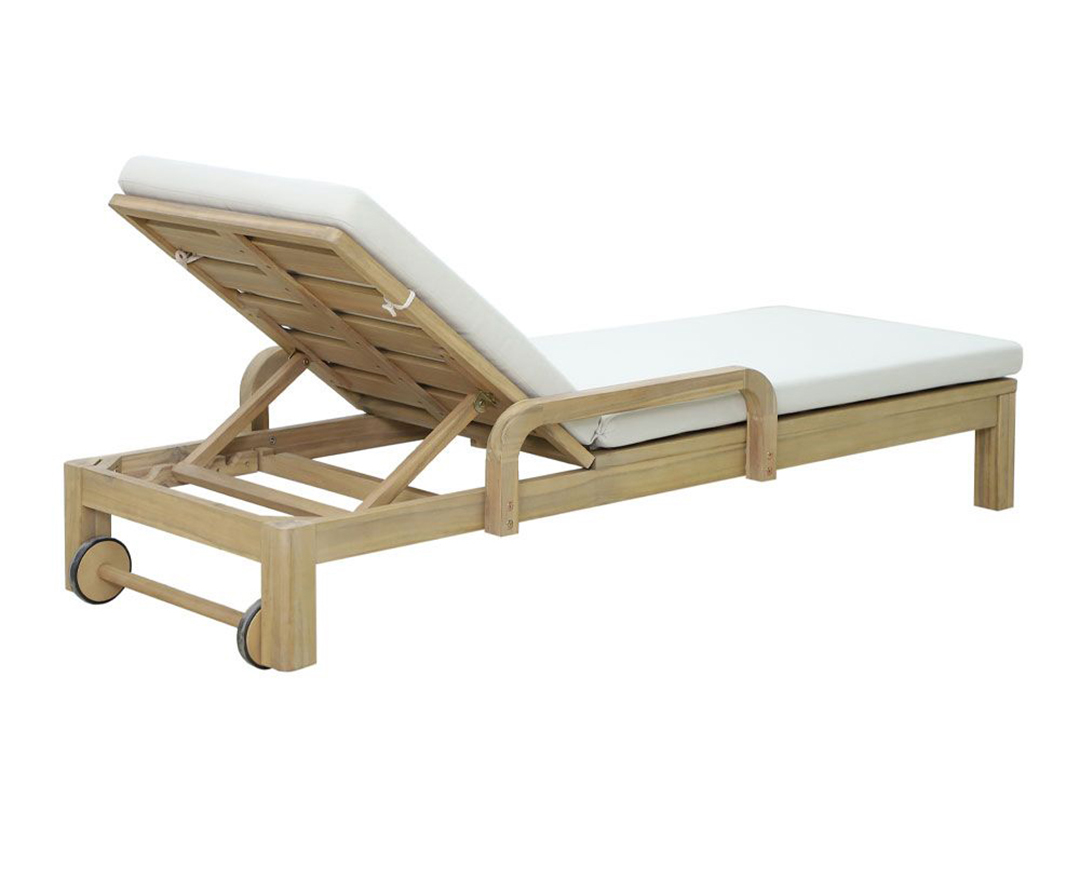 Η ξαπλώστρα αυτή αποπνέει αίσθηση χαλάρωσης και πολυτέλειας, αποτελώντας την ιδανική επιλογή για κάθε εξωτερικό χώρο. Κατασκευασμένη από ανθεκτικό ξύλο ακακίας σε φυσική απόχρωση, αναδεικνύει τη ζεστασιά και την αυθεντική ομορφιά του φυσικού υλικού. Διαθέτει αναπαυτικό μαξιλάρι από λινό ύφασμα σε κομψή μπεζ απόχρωση, προσφέροντας άνεση και υψηλή αισθητική. Ο ρυθμιζόμενος μηχανισμός της πλάτης επιτρέπει την προσαρμογή σε διάφορες θέσεις ανάκλισης, ενώ οι διακριτικοί τροχοί εξασφαλίζουν εύκολη μετακίνηση. Είναι η ιδανική επιλογή για όσους αναζητούν μια ξαπλώστρα που συνδυάζει αντοχή, εργονομία και διαχρονική κομψότητα, δημιουργώντας μια όαση χαλάρωσης στον κήπο, τη βεράντα ή την πισίνα.