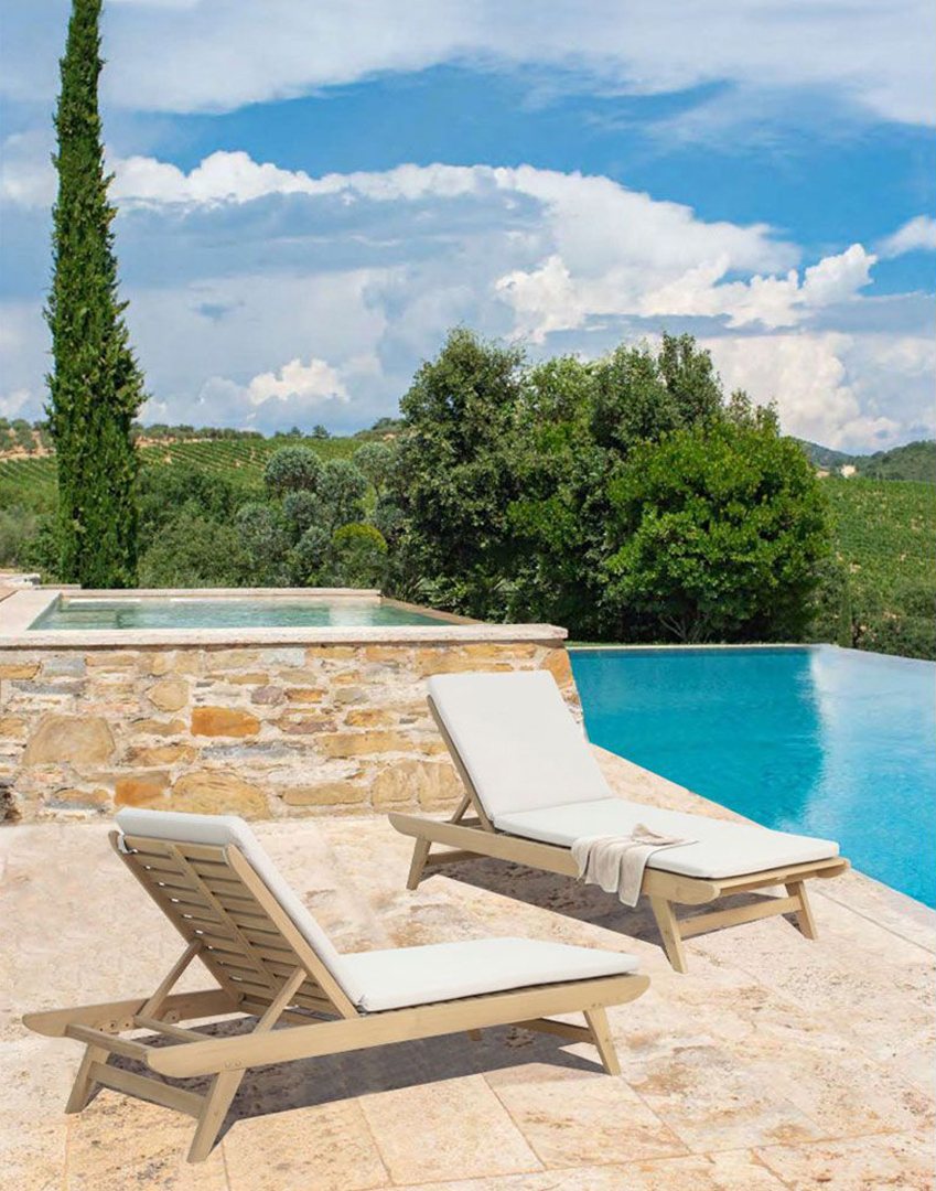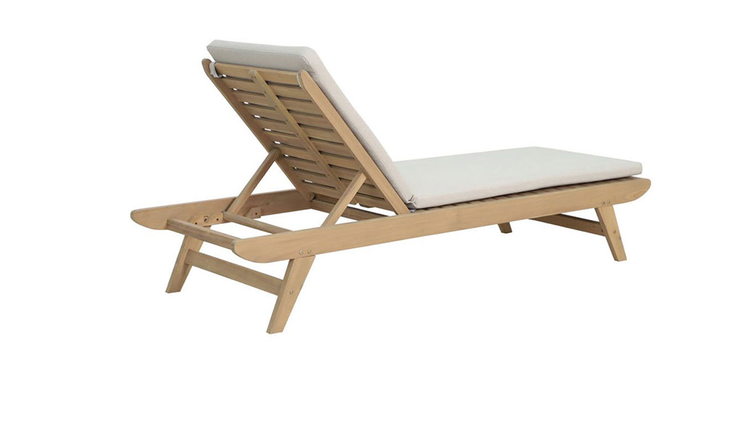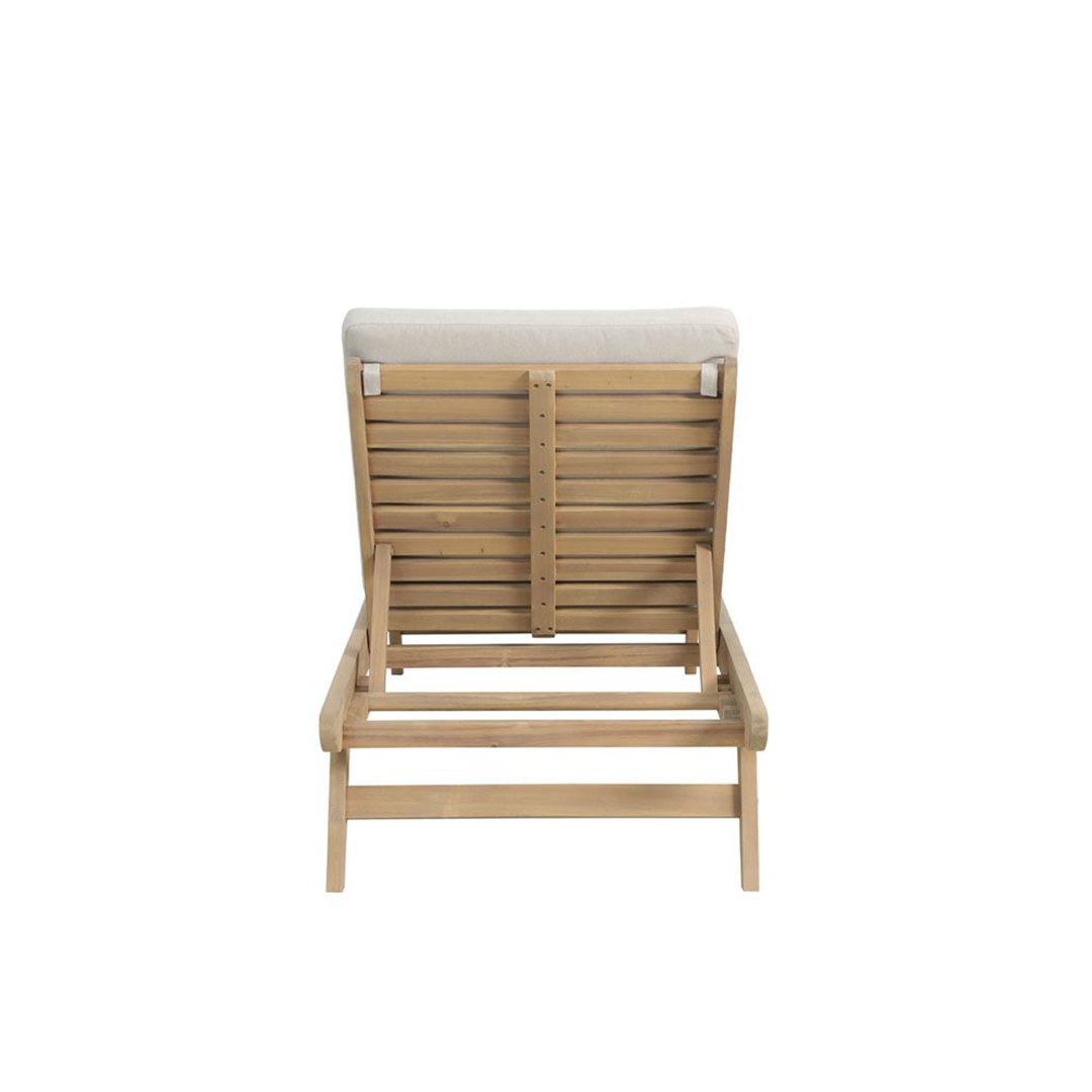 Η ξύλινη αυτή ξαπλώστρα είναι η απόλυτη επιλογή για στιγμές χαλάρωσης και κομψότητας στον εξωτερικό σας χώρο. Κατασκευασμένη από ξύλο ακακίας σε φυσική απόχρωση, διαθέτει μια στιβαρή αλλά εκλεπτυσμένη δομή, που συνδυάζει αντοχή και αισθητική. Το αναπαυτικό της μαξιλάρι από λινό ύφασμα σε ανοιχτό μπεζ χρώμα προσφέρει μέγιστη άνεση, ενώ η εργονομική της σχεδίαση επιτρέπει την προσαρμογή της πλάτης σε διάφορες κλίσεις. Ιδανική για τον κήπο, τη βεράντα ή την πισίνα, η ξαπλώστρα αυτή φέρνει έναν αέρα πολυτέλειας και χαλάρωσης στον χώρο σας.