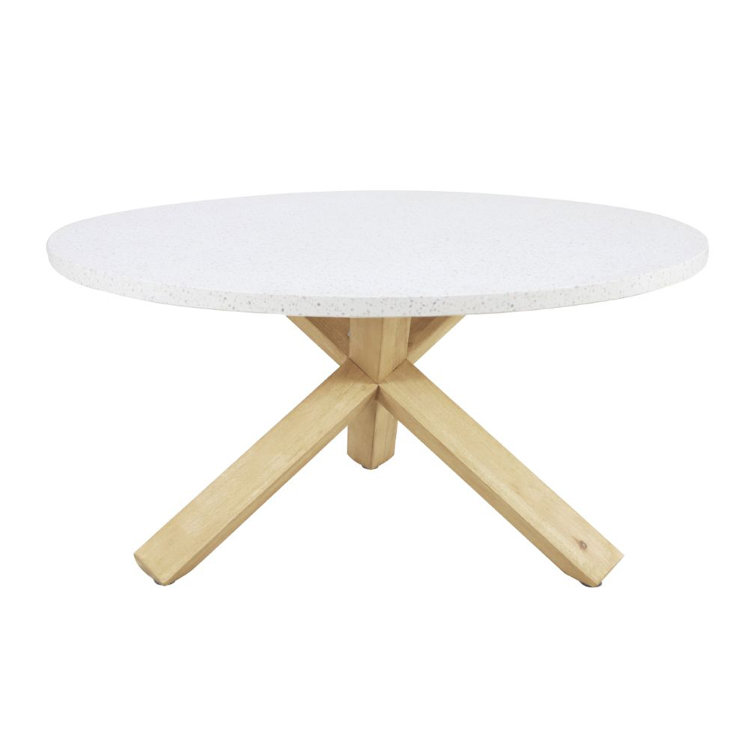 Το στρογγυλό τραπέζι που φέρνει φυσική κομψότητα και μοντέρνο στυλ στον χώρο σας, συνδυάζοντας υλικά υψηλής ποιότητας και εκλεπτυσμένο σχεδιασμό. Η στρογγυλή του επιφάνεια από υλικό terrazzo ξεχωρίζει για την μοναδική της υφή και την ανθεκτικότητα, ενώ προσδίδει μια σύγχρονη και φρέσκια αισθητική. Η στιβαρή βάση από φυσικό ξύλο ευκαλύπτου σε ανοιχτή απόχρωση προσφέρει σταθερότητα και ζεστασιά, δημιουργώντας έναν αρμονικό συνδυασμό με την ιδιαίτερη επιφάνεια. Το τραπέζι αυτό είναι ιδανικό για καθιστικούς ή επαγγελματικούς χώρους που αναζητούν διαχρονική φινέτσα και μοντέρνο design. Ένα τραπέζι που ενσωματώνει την φυσική ομορφιά με τη μοντέρνα αισθητική, αναβαθμίζοντας κάθε χώρο με μοναδικό χαρακτήρα και πρακτικότητα.