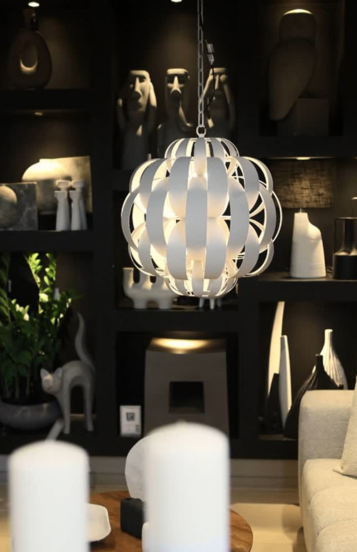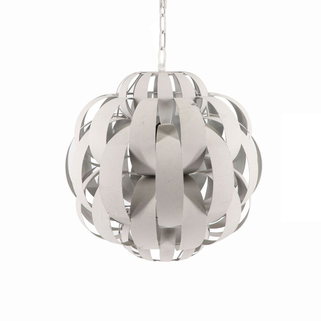Φωτιστικό οροφής με μεταλλική λευκή σφαίρα και διάτρητο μοτίβο, δημιουργώντας εντυπωσιακό παιχνίδι φωτός. Προσφέρει μοντέρνο, ατμοσφαιρικό φωτισμό που ξεχωρίζει σε κάθε χώρο. Ταιριάζει τέλεια σε καθιστικά, χολ και χώρους εστίασης. Ένα κομμάτι που προσδίδει καλλιτεχνικό χαρακτήρα και κομψότητα