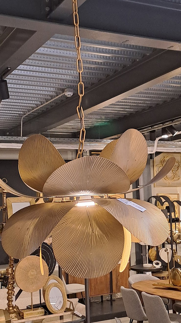 Κρεμαστό φωτιστικό με σχήμα λουλουδιού που είναι κατασκευασμένο από μέταλλο σε brown gold φινίρισμα και ξεχωρίζει για τον λουλουδένιο, ανάγλυφο σχεδιασμό του. Οι καμπύλες επιφάνειες αγκαλιάζουν το φως, δημιουργώντας μια ζεστή και ατμοσφαιρική λάμψη που δίνει χαρακτήρα στον χώρο. Με διαστάσεις 56,5Χ56,5Χ43cm, αποτελεί ιδανική επιλογή για τραπεζαρίες, καθιστικά ή χώρους φιλοξενίας που αναζητούν φωτισμό με κομψή παρουσία και φυσική αίσθηση