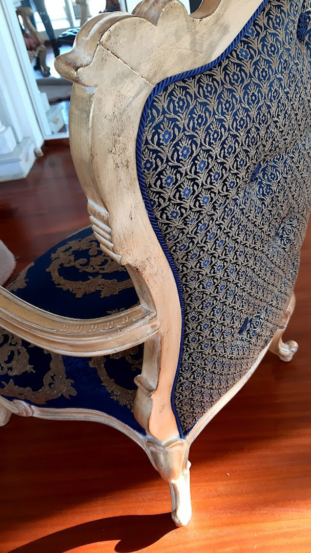 Μπλέ βάση με γυαλιστερό μπαρόκ σχέδιο για κλασσική πολυθρόνα και καναπέ.