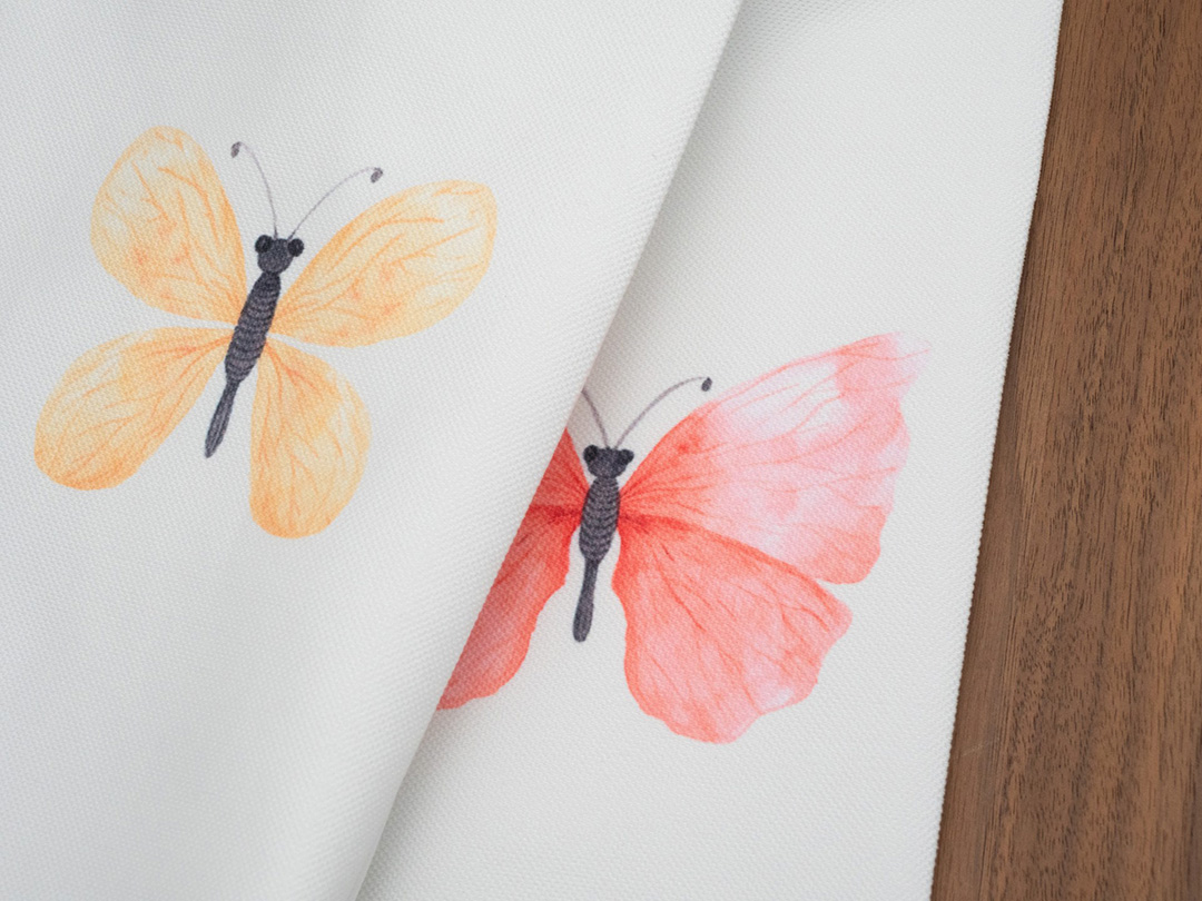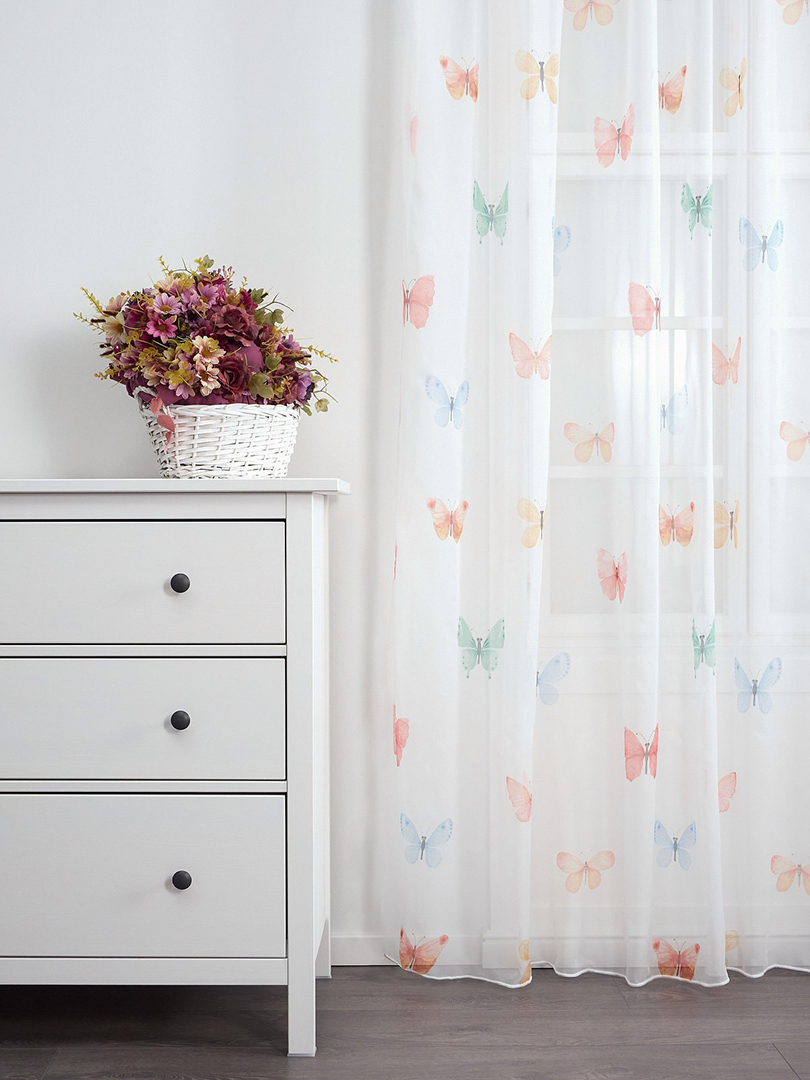 Ομορφό ύφασμα με πεταλούδες το οποίο διατίθεται σε χονδρή και ψιλή κουρτίνα και έχει και κομποζέ σχέδια στα χρώματα του σχεδίου.