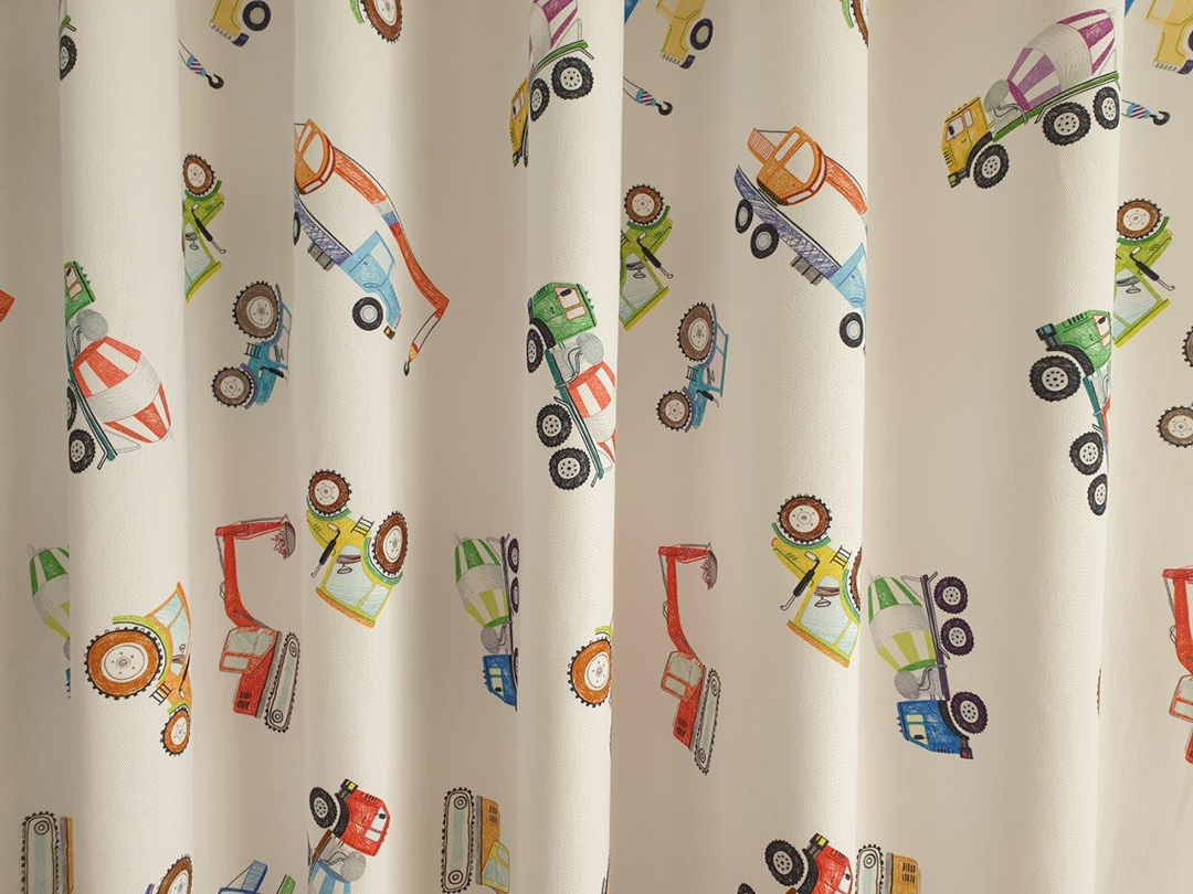 Βαμβακερό ύφασμα για κουρτίνα παιδική με θέμα μηχανήματα εκσκαφής .