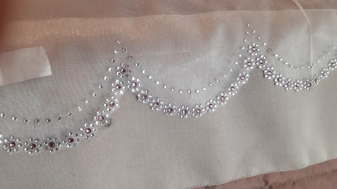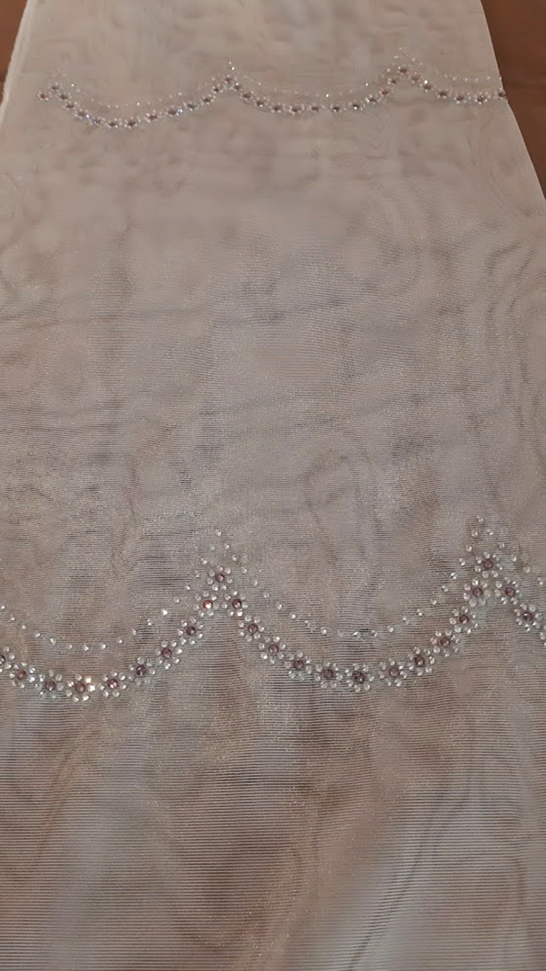 Φάρδος υφάσματος στα 300 εκατοστά και είναι όλη κεντητή με σχέδιο λουλουδάκι Swarovski το οποίο δεν φεύγει στο πλύσιμο.