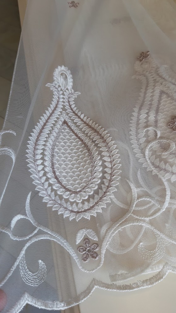 Εχει φάρδος 3 μέτρα στο τόπι και ράβεται στα μέτρα σας.