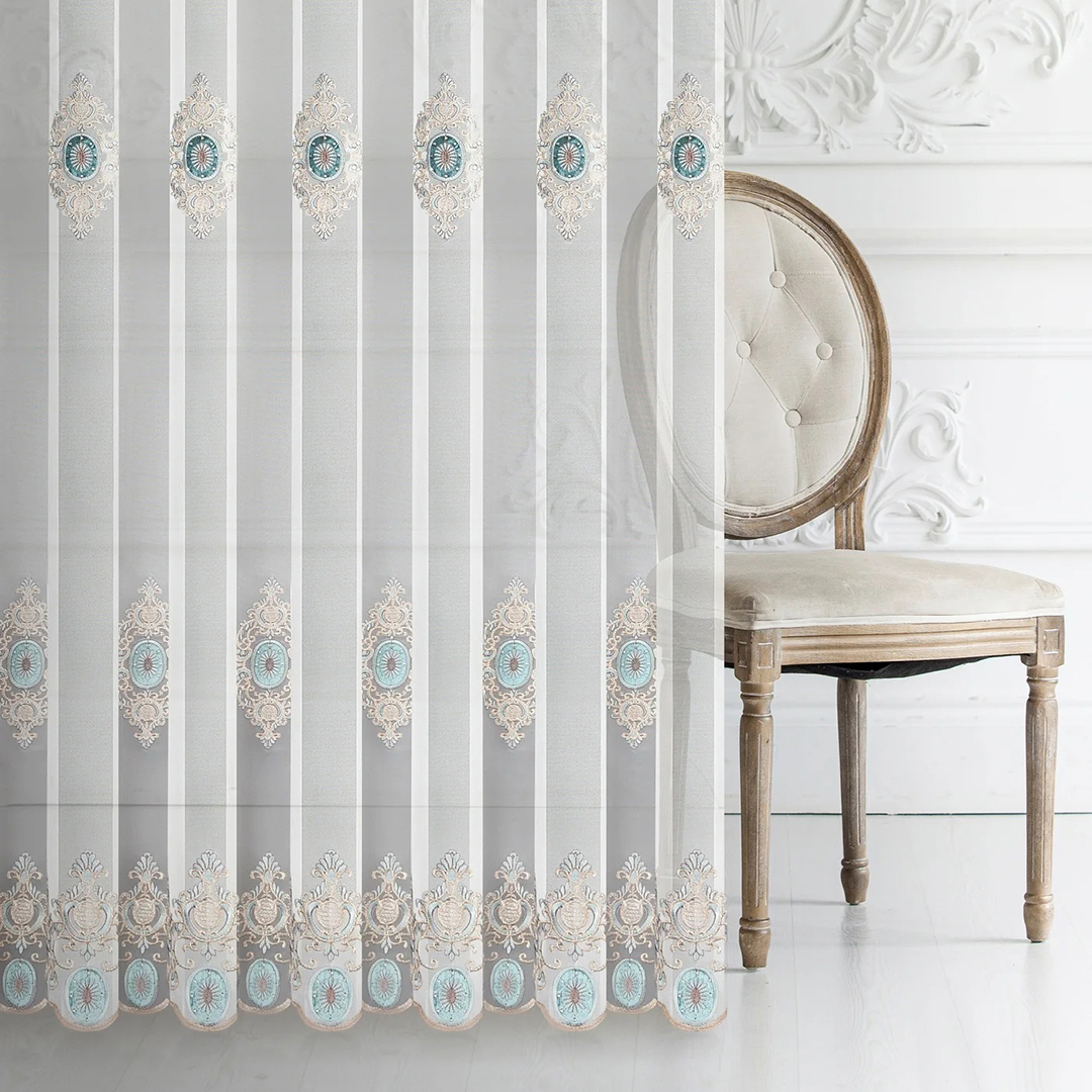 A142 ΓΑΖΑ ΜΕ ΚΕΝΤΗΤΟ ΜΟΤΙΦ ΜΕ STRASS 0,00€ / Μέτρο Κωδικός Προϊόντος:A142 / T68 Διαθεσιμότητα: Κατόπιν τηλ. επικοινωνίας Εκδήλωση Ενδιαφέροντος Περιγραφή: Ράβεται κατά παραγγελία στα μέτρα σας σαν κουρτίνα είτε διακοσμητικά είδη σπιτιού. Composition: 100% POLYESTERFabric height: 280 cmReport: -Color: cream , turquoiseFabric features: shiny micro-mesh, with colorful ornamental embroidery, with velvet application and zirconsDarkening: small