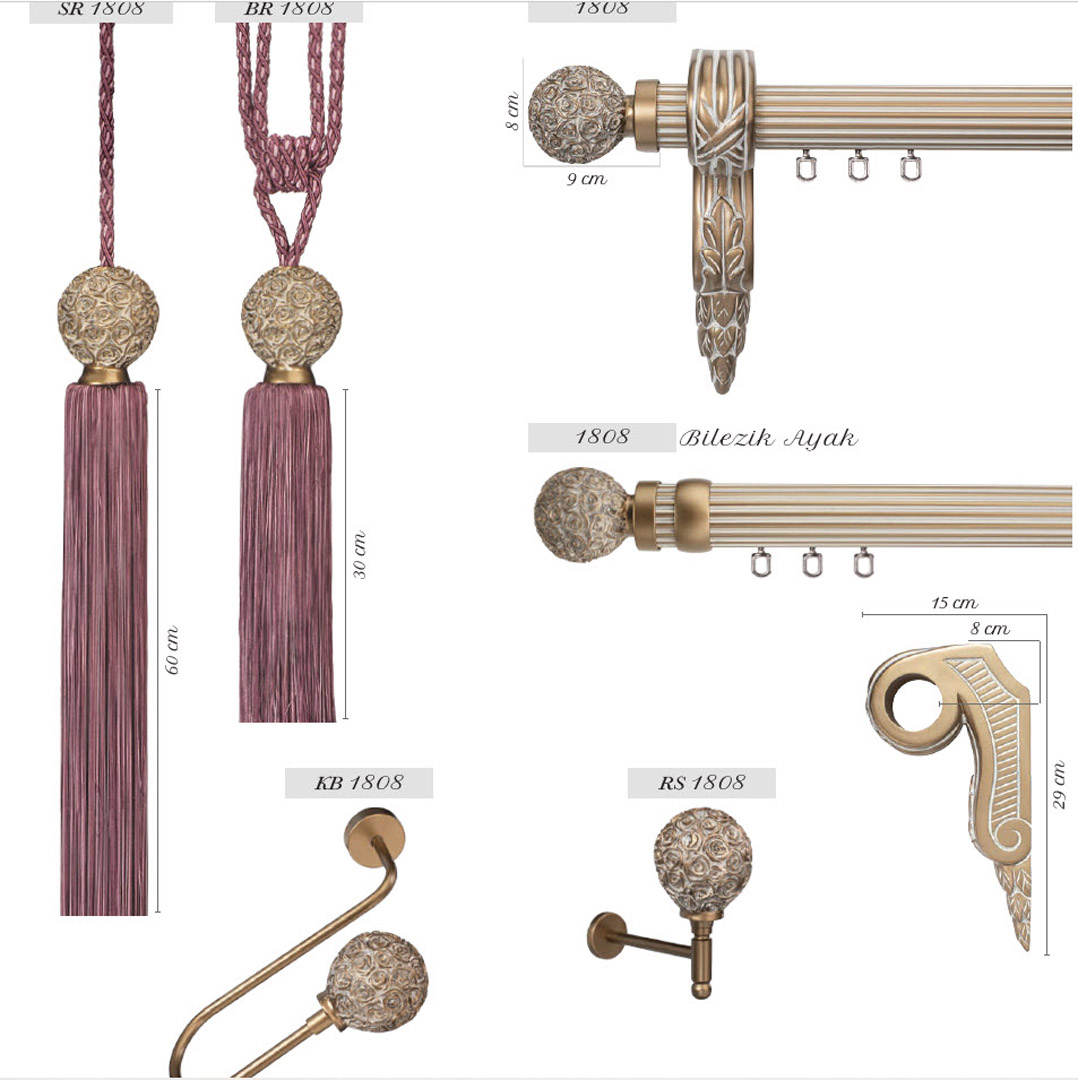 Ø Συνοδευτικά Αξεσουάρ: Όλα τα σχέδια διαθέτουν ασορτί φούντες, αμπράζ τοίχου,κρίκους,τάπες και μπορείτε να συνδυάσετε διαφορετικά άκρα ή μπράτσα σε κάθε σωλήνα ώστε να φτιάξετε το δικό σας κουρτινόξυλο που να ταιριάζει απόλυτα στον δικό σας χώρο και τα δικά σας γούστα.