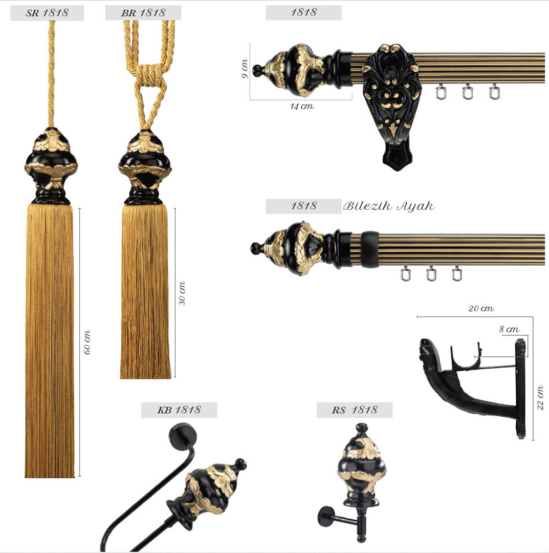 Ø Συνοδευτικά Αξεσουάρ: Όλα τα σχέδια διαθέτουν ασορτί φούντες, αμπράζ τοίχου,κρίκους,τάπες και μπορείτε να συνδυάσετε διαφορετικά άκρα ή μπράτσα σε κάθε σωλήνα ώστε να φτιάξετε το δικό σας κουρτινόξυλο που να ταιριάζει απόλυτα στον δικό σας χώρο και τα δικά σας γούστα.