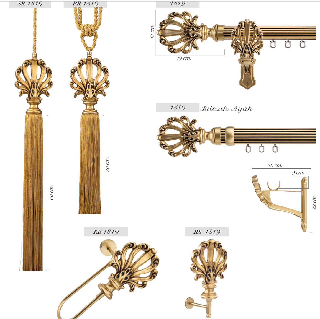 Ø Συνοδευτικά Αξεσουάρ: Όλα τα σχέδια διαθέτουν ασορτί φούντες, αμπράζ τοίχου,κρίκους,τάπες και μπορείτε να συνδυάσετε διαφορετικά άκρα ή μπράτσα σε κάθε σωλήνα ώστε να φτιάξετε το δικό σας κουρτινόξυλο που να ταιριάζει απόλυτα στον δικό σας χώρο και τα δικά σας γούστα.