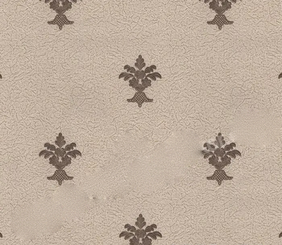 Its surface is textured, the surface material is Vinyl and the base material that adheres to the wall is made of Paper.