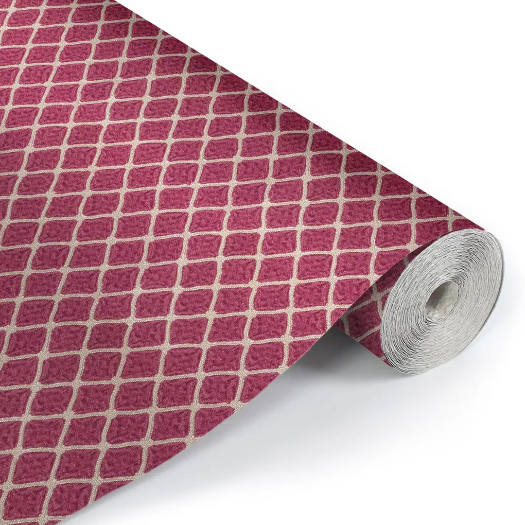 Its surface is textured, the surface material is Vinyl and the base material that adheres to the wall is made of Paper.