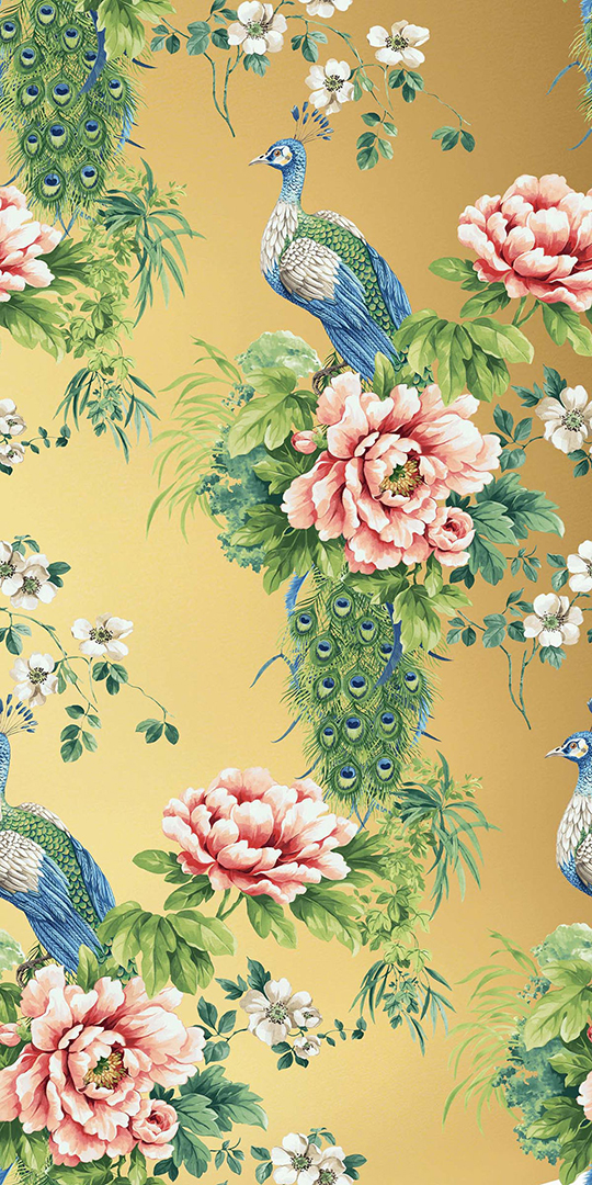Themes of Chinoiserie and Tropical. Chinoiserie offers a bridge between East and West with symbolic and beautiful scenes. The Tropical element celebrates nature with its lush foliage and vibrant spectrum of colors.