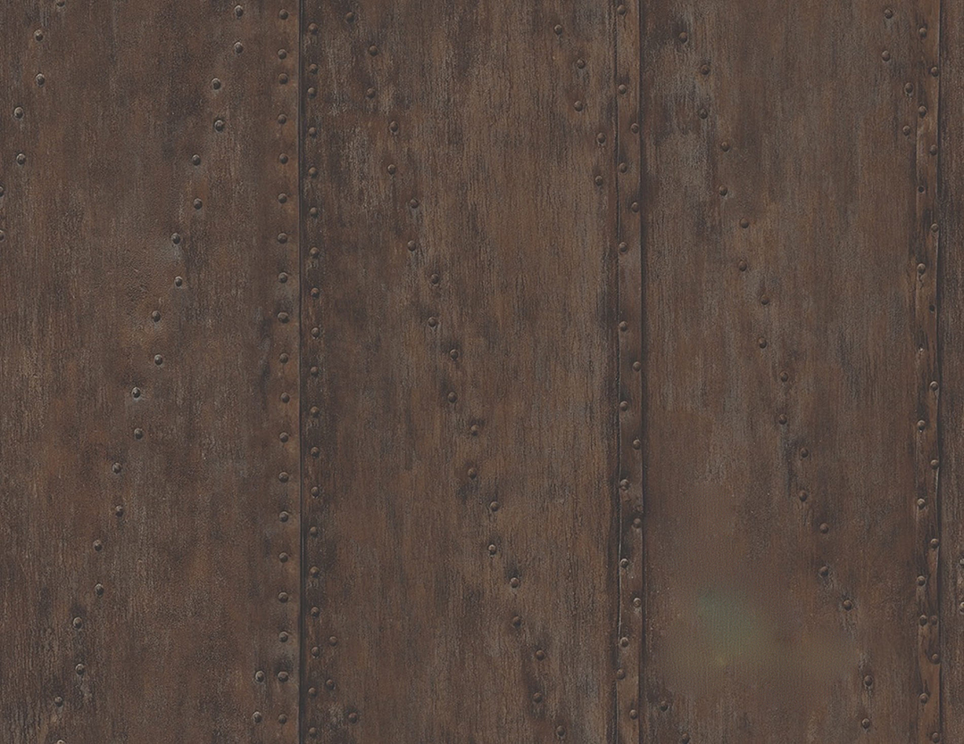 Wallpaper with a pattern resembling longitudinal tin plates with rivets