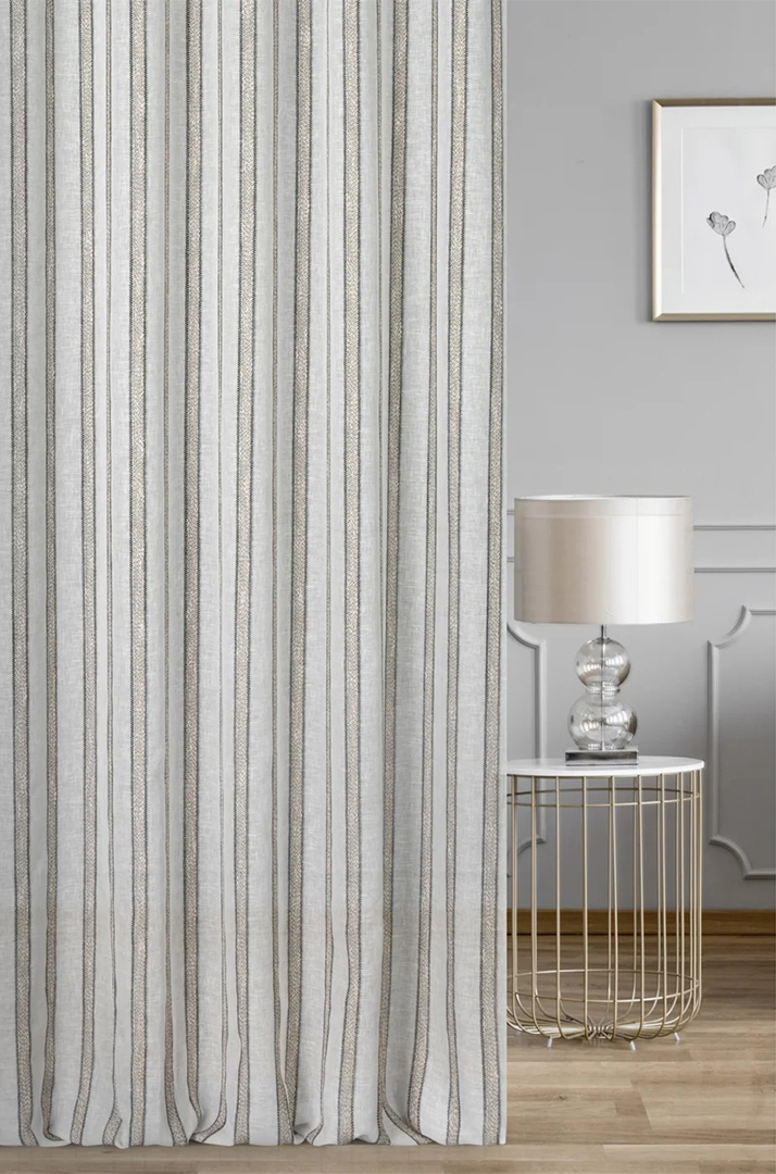 Fabric features: light, made of cheesecloth, eco style, with vertical stripes