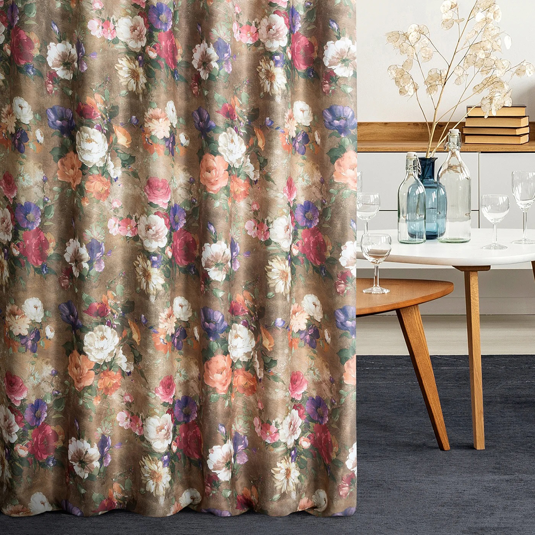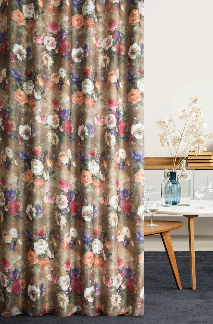 Fabric features: blackout type, with a painted floral motif