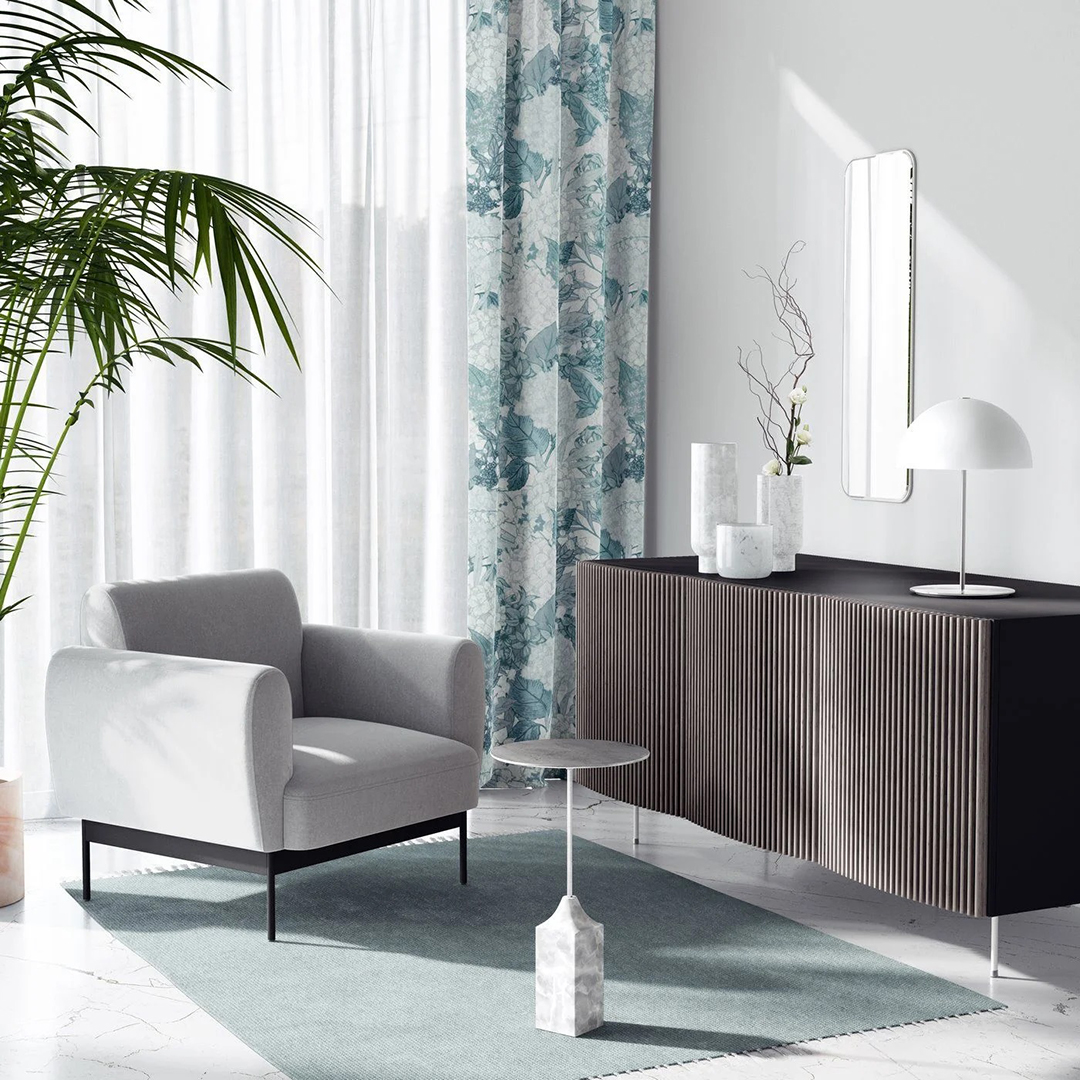 Fabric features: blackout, semi-matte, with a floral print in subdued colors