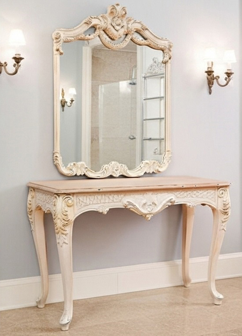 Χειροποίητη κονσόλα με καπάκι από φυσικό μάρμαρο, όπου η τέχνη του ξύλου συναντά τη διαχρονική κομψότητα της πέτρας.