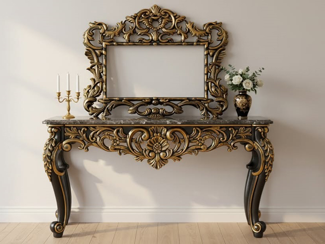 Χειροποίητη κονσόλα από μασίφ ξύλο, όπου η αυθεντικότητα του υλικού συναντά τη διακριτική πολυτέλεια.