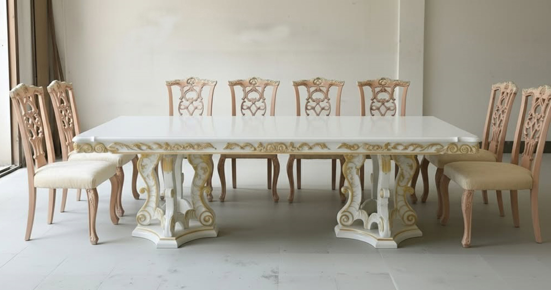 Οι μπαρόκ τραπεζαρίες — επιβλητικές, ρομαντικές, χειροποίητες σε κάθε λεπτομέρεια — φέρνουν τη θεατρικότητα και τη μεγαλοπρέπεια μιας άλλης εποχής σε κάθε σύγχρονο σπίτι