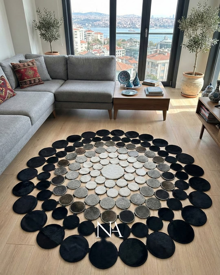 Η δύναμη της φύσης αποτυπώνεται σε αυτό το χειροποίητο χαλί, όπου το φυσικό δέρμα και η γούνα συναντούν την τέχνη.
