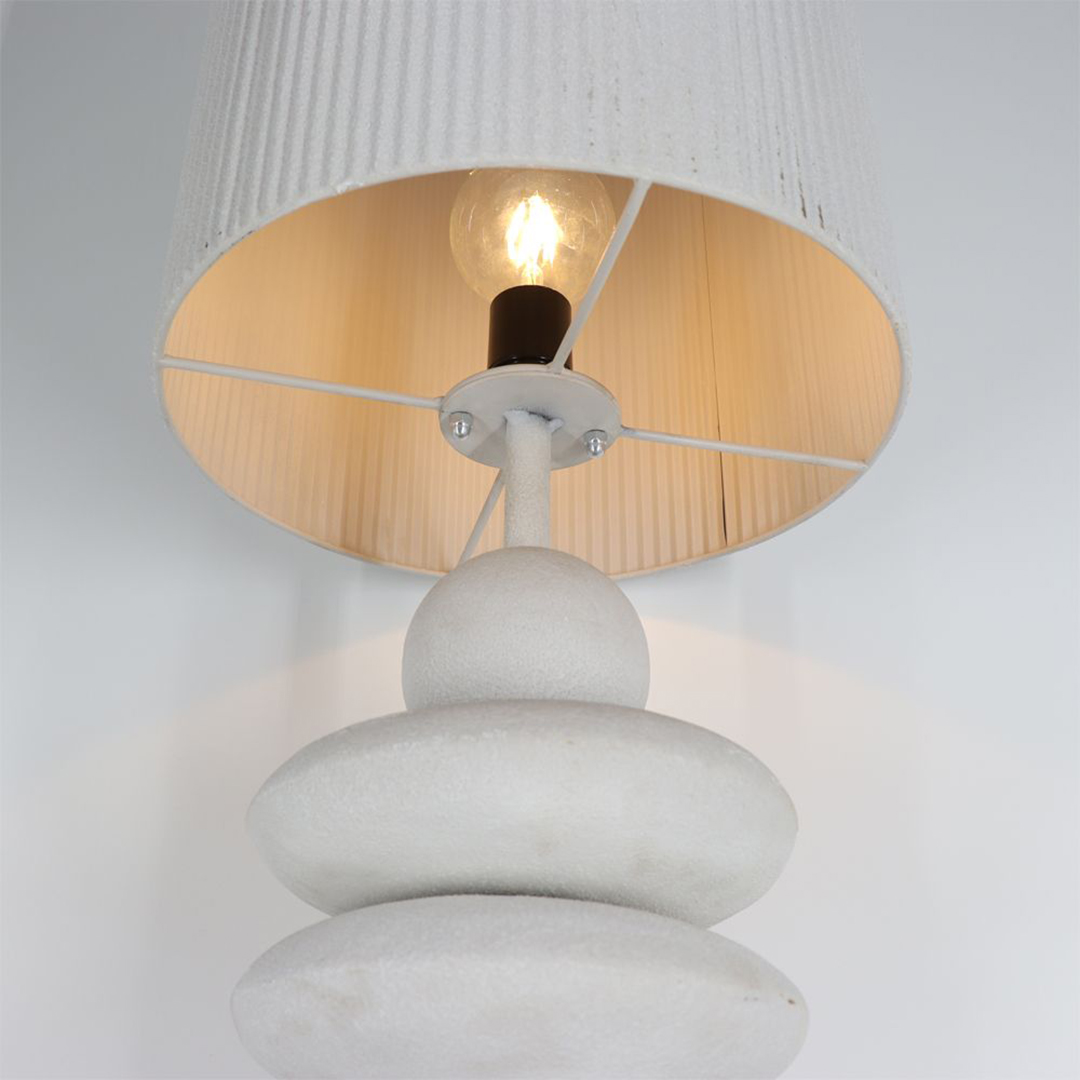 Επιδαπέδιο φωτιστικό με έντονη γλυπτική παρουσία και ξεχωρίζει από τη βάση του, που αποτελείται από διαδοχικά, στρογγυλεμένα στοιχεία και δίνει ύψος και ρυθμό στο φωτιστικό. Το καπέλο με κάθετες γραμμές ολοκληρώνει το σύνολο, φιλτράροντας το φως και δημιουργώντας μια ήρεμη, ατμοσφαιρική φωτεινότητα. Η off white απόχρωση κρατά το αποτέλεσμα φωτεινό και ουδέτερο, ώστε να ταιριάζει εύκολα σε σύγχρονους αλλά και πιο κλασικούς χώρους. Είναι ιδανικό για καθιστικά, γωνιές ανάγνωσης ή επαγγελματικούς χώρους που χρειάζονται φως με χαρακτήρα. Κατασκευασμένο από σίδερο, προσφέρει σταθερότητα και αντοχή.